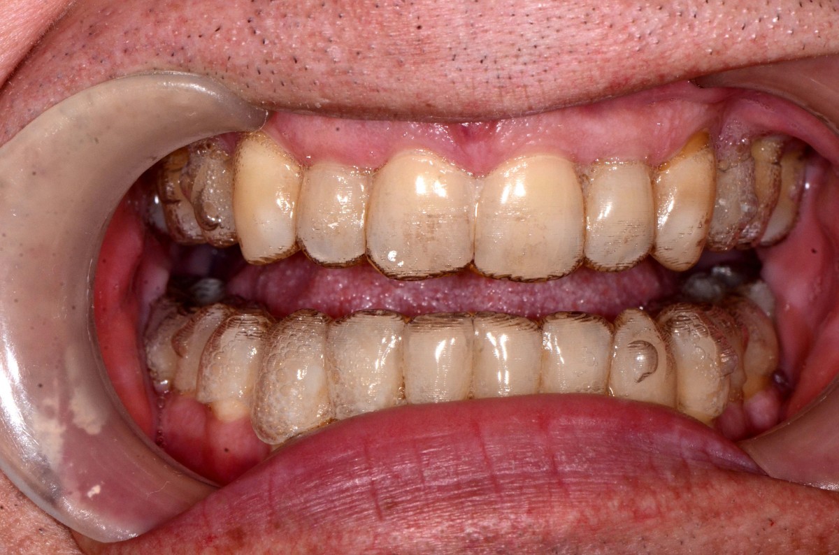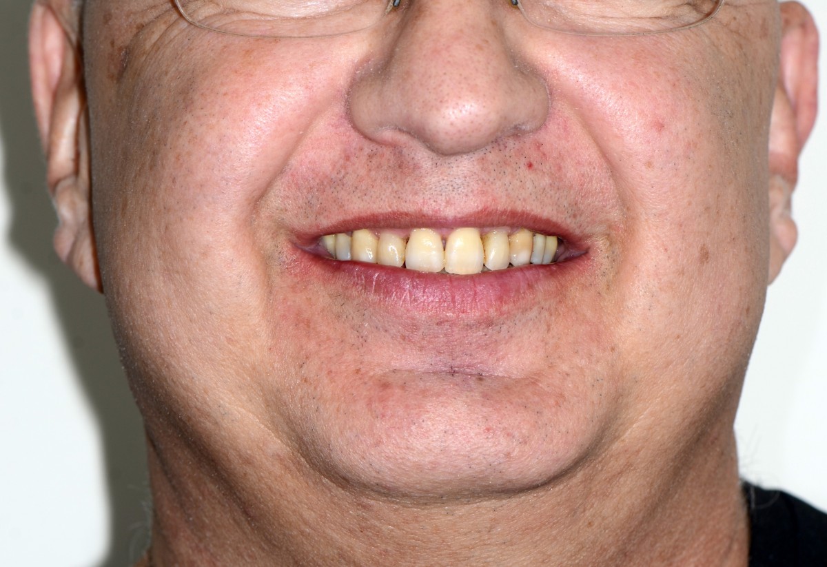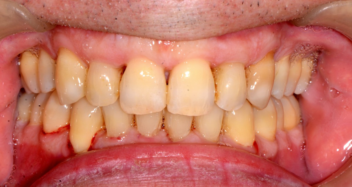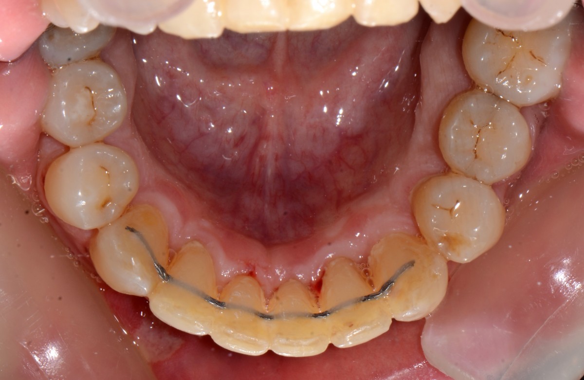 G.L., 51 years old patient, pre- sented to the clinic with Class I malocclusion, deep bite with complete coverage of lower in- cisors, big median diastema between teeth #11 and #21, lack of interdental papilla and poor oral hygiene (figs. 3, 4).