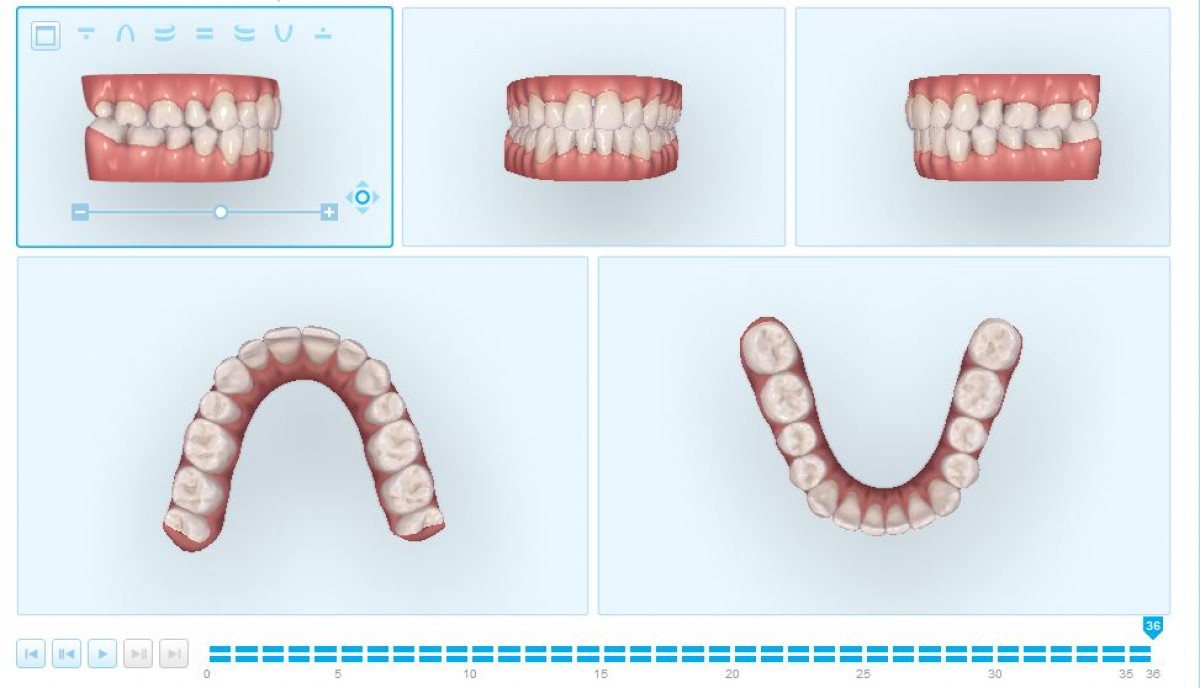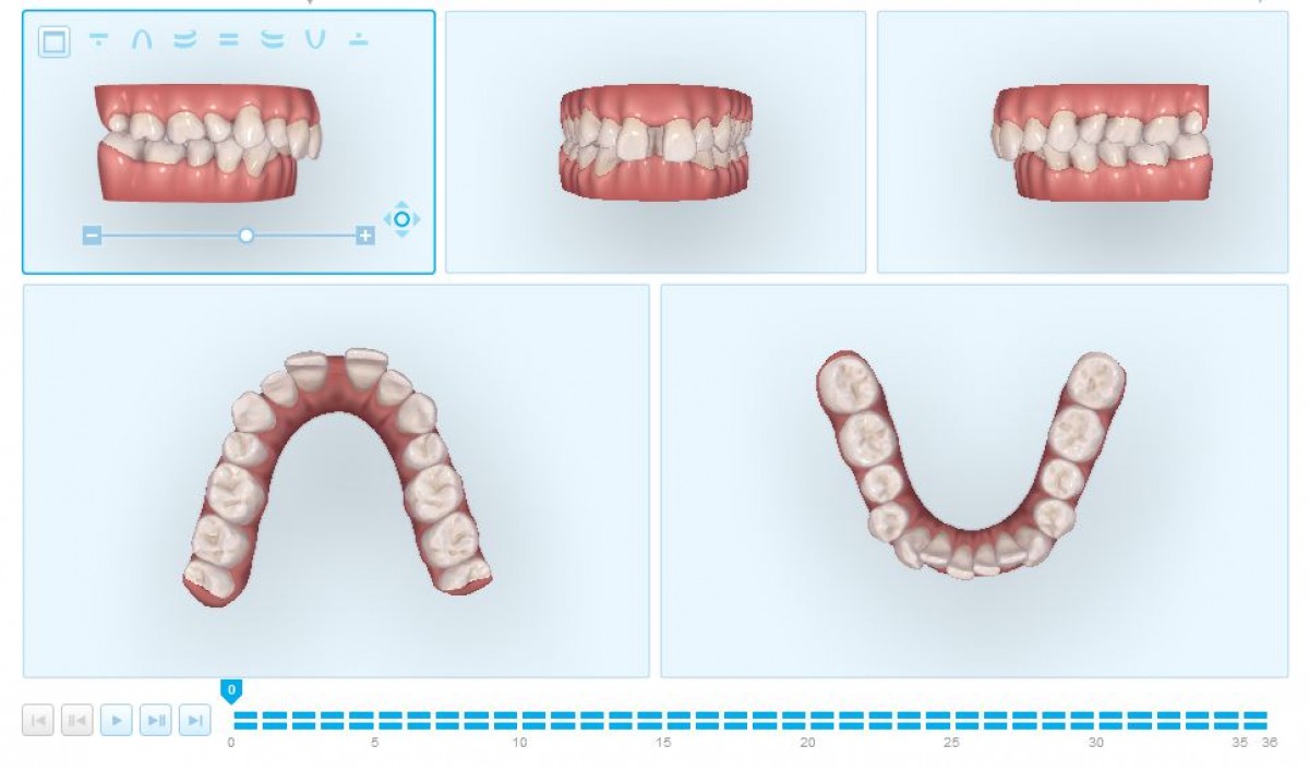 Treatment was planned with Clincheck® Software of Invis- align® (Milano, Italia). 36 aligners were prescribed for 40 weeks (9 months). Patient was monitored every 2 months with photos, oral hygiene mechani- cal cleaning and periodontic examination.