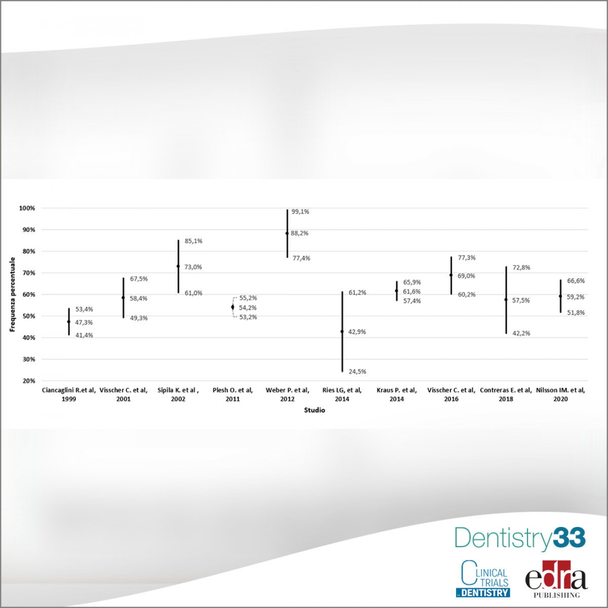 From the 524 articles identified by a defined search strategy, we selected ten relevant observational study and for each the following information were recorded: TMD sample size, demographic features (age and sex, when reported); methods for TMD and CP diagnosis, prevalence of CP. Then we measured odds, 95% confidence interval (95% CI) estimate for each CP prevalence and the statistical significance of the frequency distributions (p <0,05). A bibliometric analysis was also carried out on the trend of publications over the last twenty years.