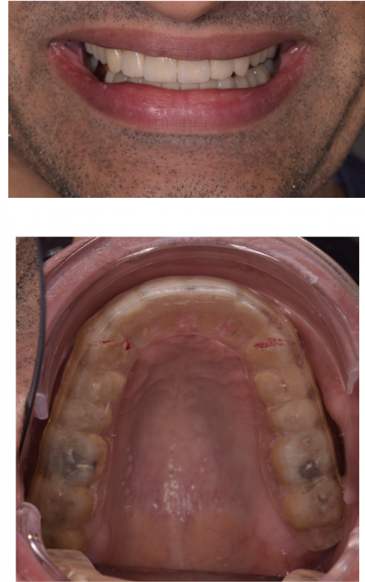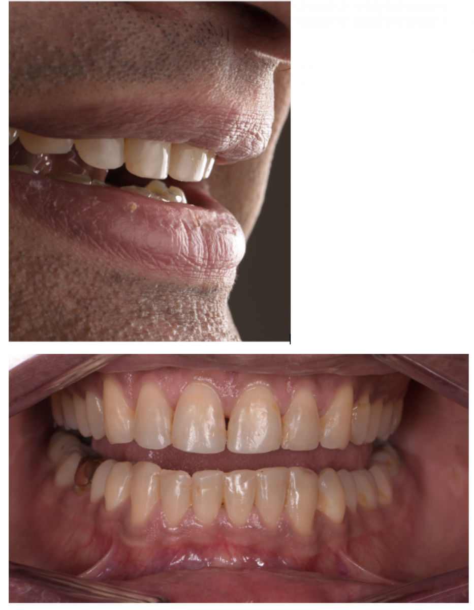 39-year-old male referred to improve aesthetics. His main concern was: ‘my teeth are not straight and are also chipping. UI do not want to have broken teeth’.