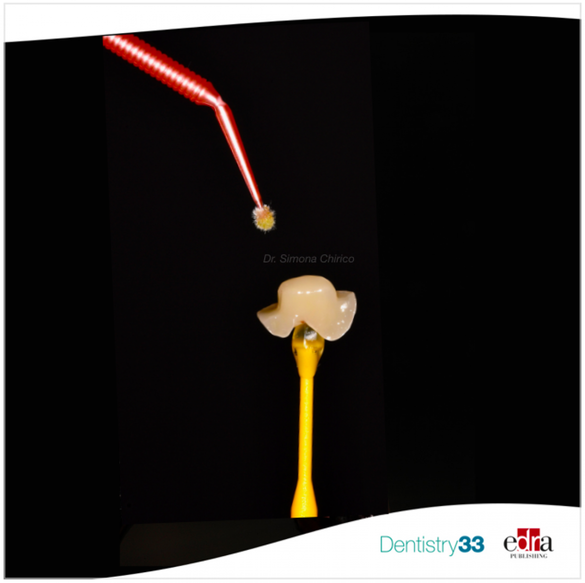 Resin composite materials, with their excellent mechanical properties and aesthetic properties, are now considered the materials of choice in dental restorations. In addition to direct fillings, composites are also indicated for indirect restorations, which differ from direct restorations in the method of polymerization that is performed in the laboratory, which causes a greater degree of monomer conversion and less shrinkage, thus limiting the volumetric shrinkage to the thin layer of concrete. The cementation process of indirect inlays is considered a critical step determining the longevity of the restoration itself. It may be difficult to choose the most appropriate resin cement to use. Resin cements can be classified, depending on the pretreatment of the tooth substrate and the treatment of the smear layer, into: