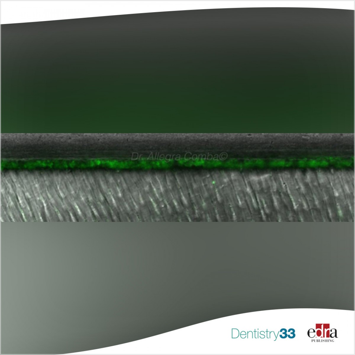 The authors selected non-carious extracted molars, cut into slabs exposing middle/deep dentin, etched and assigned them to two groups with or without 0.2% CHX aqueous solution pretreatment. Finally bonded the samples with Adper Scotchbond 1XT (SB1XT). Composite build-ups were made, and the specimens were cut in 1-mm thick bonded sticks. In situ zymography was performed on freshly prepared specimens (T0) and specimens aged for 10 years (T10-yr) at 37◦C in artificial saliva, to investigate endogenous gelatinolytic activity within the HL. At T10-yr, specimens were also decalcified and embedded in epoxy resin for TEM analysis. Micro-Raman spectroscopy was performed at T0 and T10-yr to evaluate the chemical profiles in intertubular dentin and the HL.