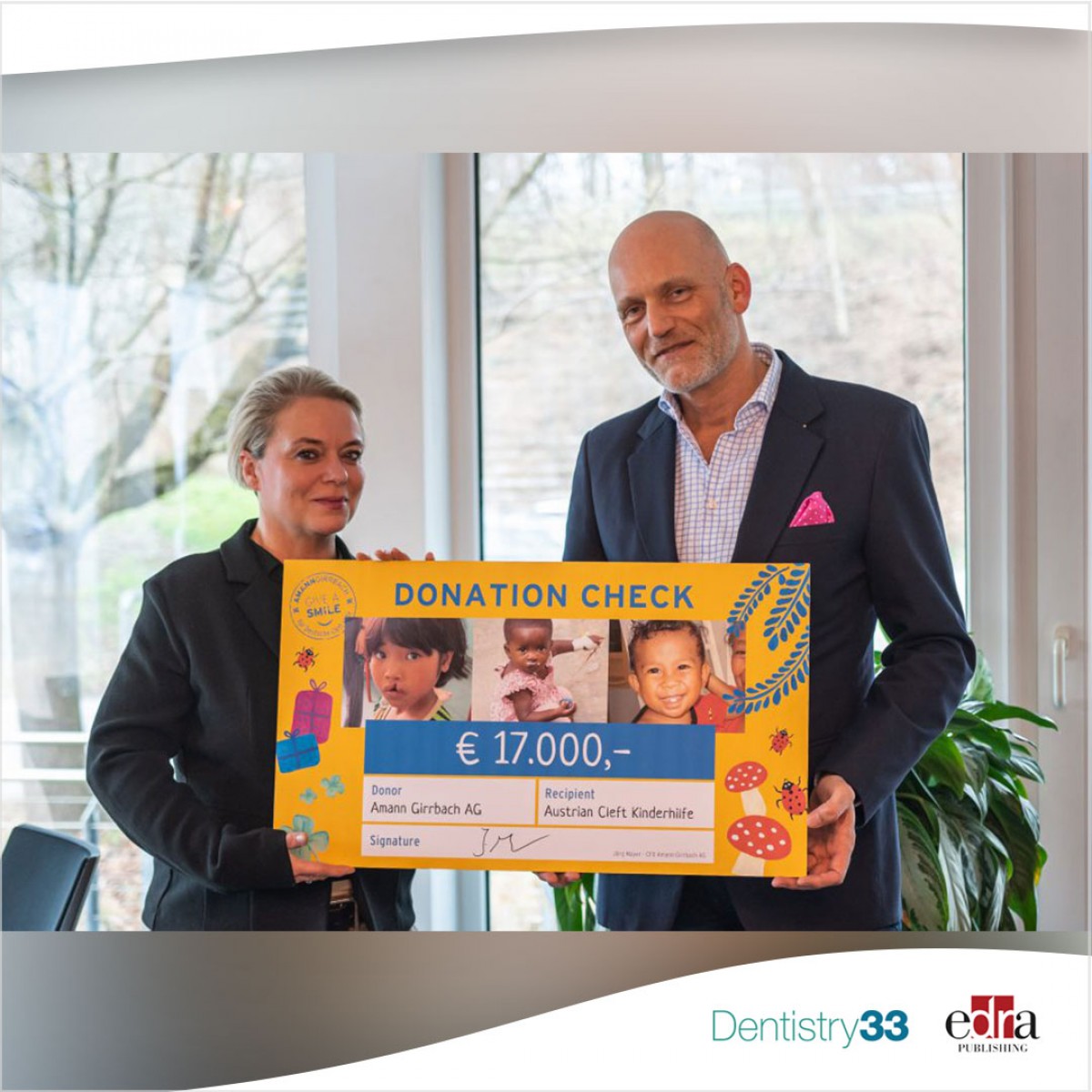 The dental technology company Amann Girrbach has supported the Cleft Kinderhilfe since 2018 in Germany and in Austria since 2019. The company initiated several fundraising campaigns working with dealers and customers. As part of a Christmas raffle by employees and with the support of the company’s top management, an additional check has been relayed in the amount of EUR 17,000 ($18,000 USD) to the Austrian Cleft Kinderhilfe.