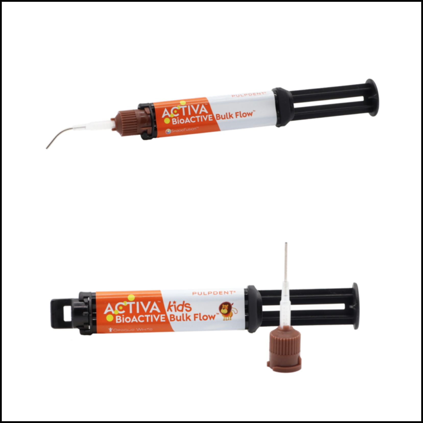 The product comes in a 5g syringe and includes 10 Automix tips. As with all Pulpdent products, ACTIVA BioACTIVE Bulk Flow is made in the USA to the highest quality assurance standards in Pulpdent’s manufacturing facilities in Watertown, Massachusetts.