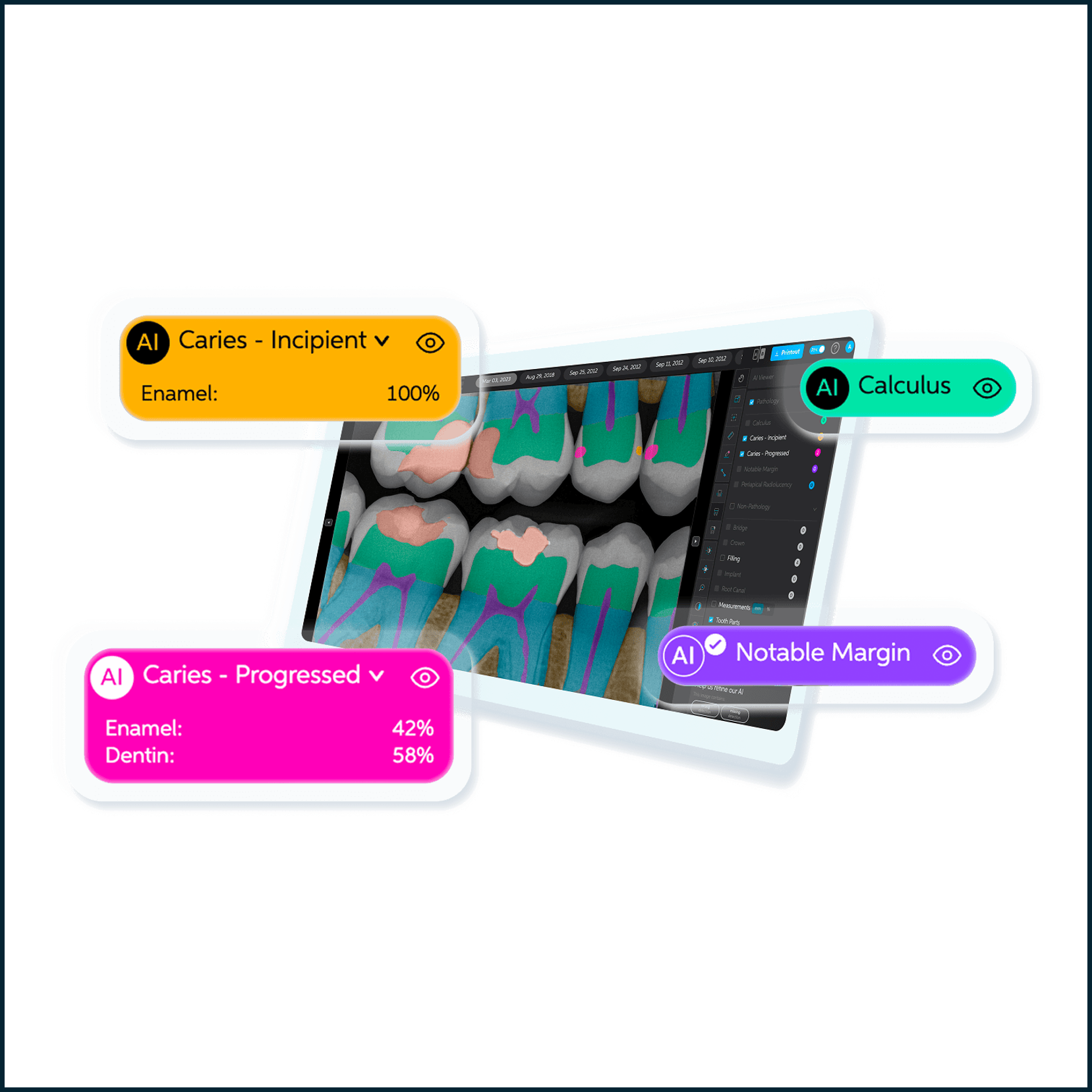 The integration enables automatic exchange of 2D X-ray data between DS Core and Second Opinion chairside dental AI software. This allows dentists to utilize AI-driven insights to help them identify anatomical structures and detect issues such as early-stage cavities or bone loss. These findings support the dentist’s clinical expertise during treatment planning and presentation. The AI also generates visualizations with automated annotations and measurements, which serve as compelling tools for patient education and help improve treatment acceptance.