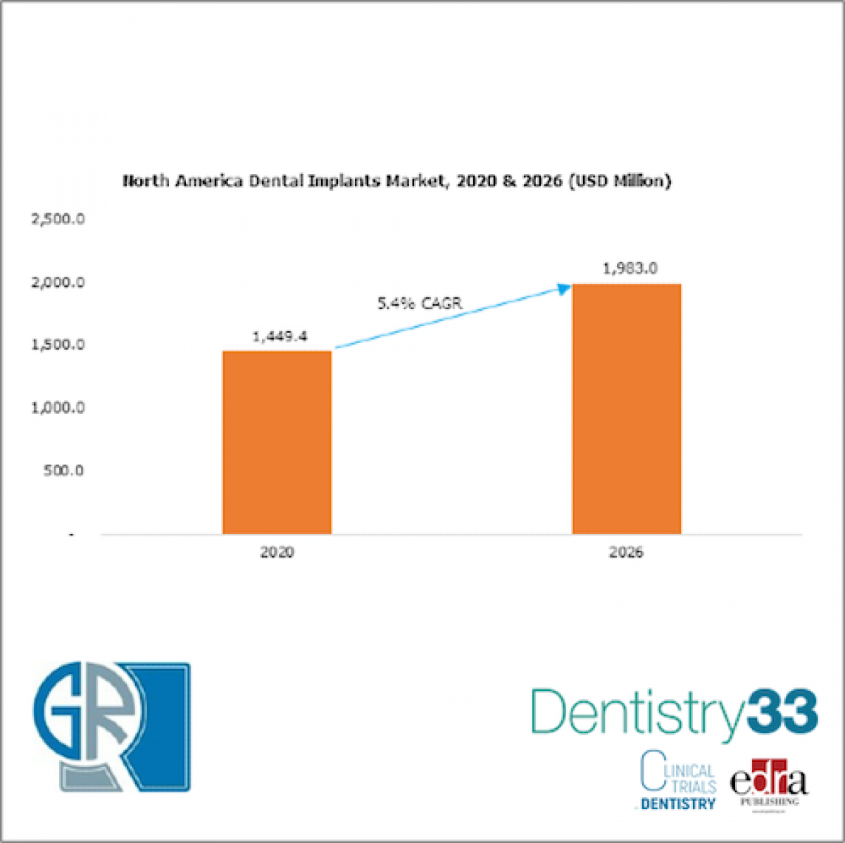 Market insights firm, Graphical Research, suggests that the global market in dental implants will grow over the next few years. The North American dental implant market was valued at $1.2 billion in 2019, and is predicted to grow from 2020 to 2026 by a CAGR of 5.4%, according to Graphical Research.
