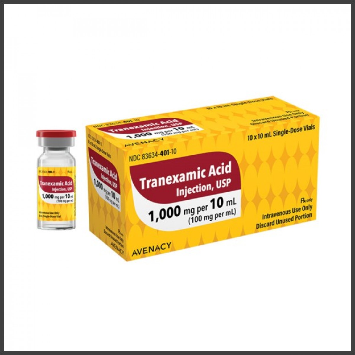 Avenacy’s Tranexamic Acid Injection, USP is available in 1,000 mg/10 mL (100 mg per mL) 10-pack single-dose vials. In line with Avenacy’s mission to champion patient safety and streamline patient care, Tranexamic Acid Injection, USP will feature the Company’s highly differentiated packaging and labeling to support accurate medication selection.