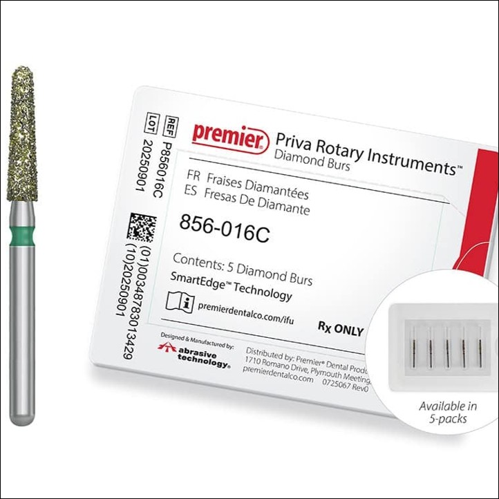 Priva Rotary Instruments Diamond Burs are available in 5-packs through authorized distributors.