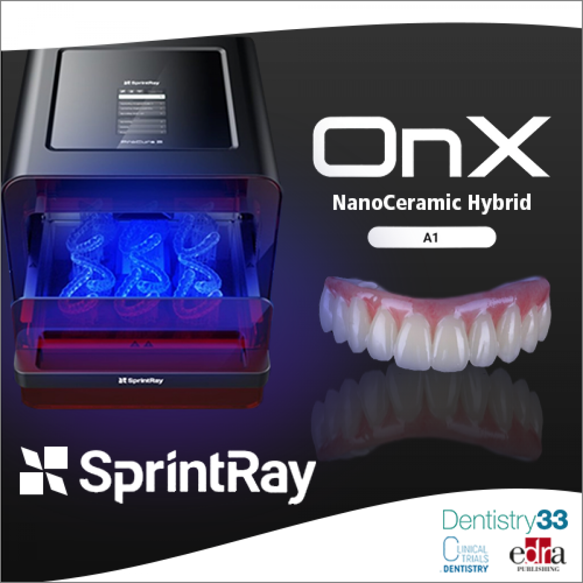 3D printing and digital dentistry company, SprintRay Inc., has launched its 3D printer resin which is radio-opaque and improvements to its care solutions. The new resin is for the company’s SprintRay OnX, hybrid dentures held by implants.