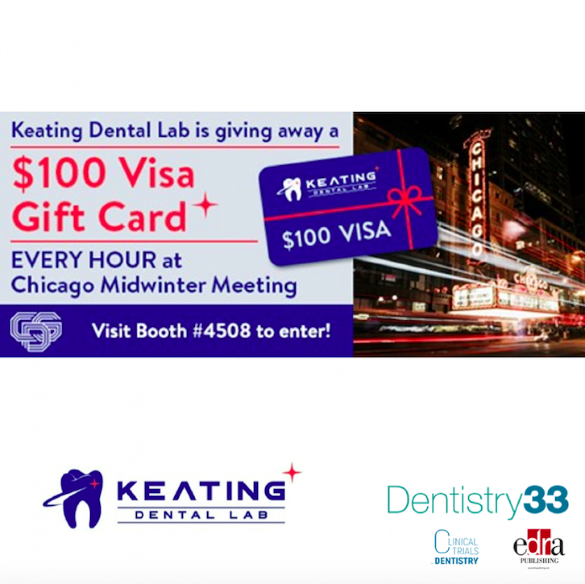Get lucky at Keating Dental Lab Booth #4508, and you could walk away with a $100 Visa Gift Card.