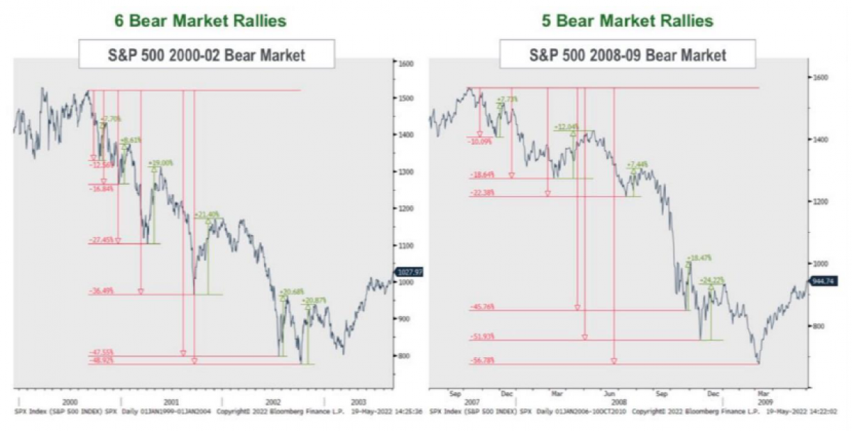 In the past year, we have witnessed a sharp decline in all the main stock exchanges, especially the ones in America with very strong weekly or daily rebounds. This is completely normal in bear-ish phases.
