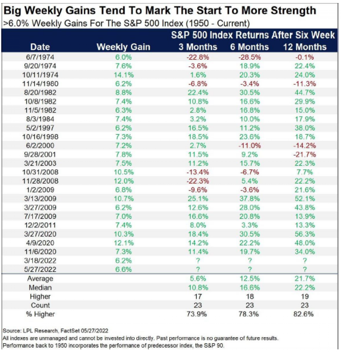 We come from a strong oversold, from a cosmic pessimism. Therefore, a technical rebound can be normal. As can be seen from the image above, in the face of important weekly gains, the markets almost always continue to rise in the wake of the momentum.