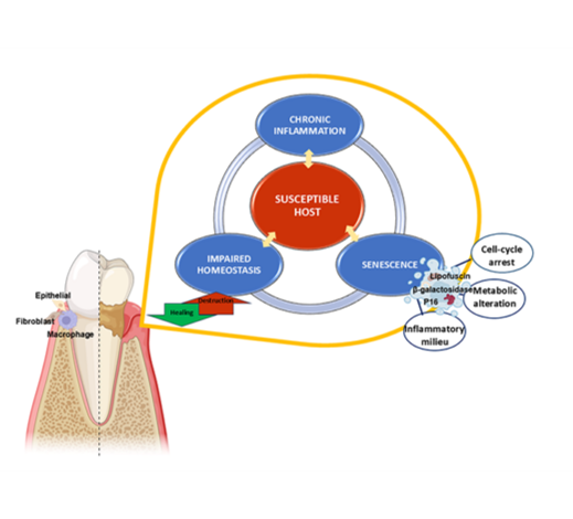 Researchers at Penn Dental Medicine discovered in a previous clinical study that the chronic gum inflammation can promote an aging-related condition called “senescence,” even in younger tissues. Senescent cells, which have permanently ceased to divide in response to stress, secrete inflammatory molecules that increase tissue damage, impair healing, and accelerate disease severity.