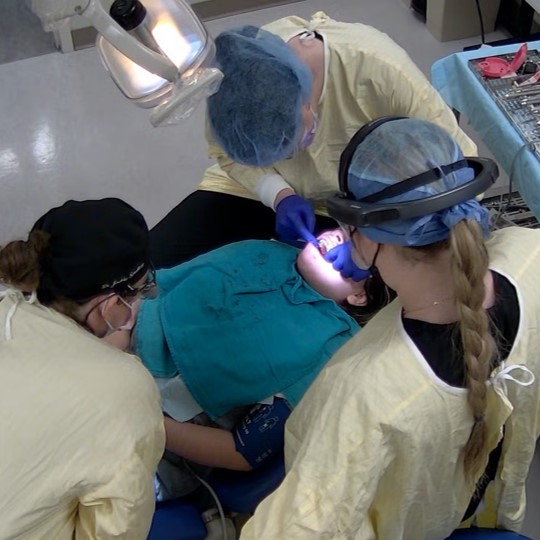 A team of oral health care providers, including ASOD’s Jacklyn Smollett, DDS, Bethany Doolittle, DDS, adjunct professor Dick Barendregt, DDS, MSc, PhD, John Christensen, DDS, adjunct professor, and Antonio Moretti, DDS, MS, associate dean of advanced dental education, performed the autotransplantation procedure, provided oversight and narrated during the event.