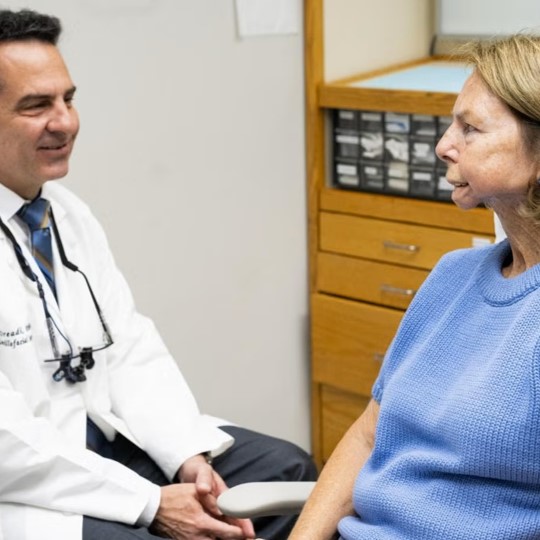 “I’m grateful to all at Tufts Dental,” Hapenney says. “It’s so important for any head and neck cancer survivor to feel confident in their care and to see someone experienced like Dr. Oreadi.” Daniel Oreadi, DG09, DI13, associate professor in the Department of Oral and Maxillofacial Surgery, helps Hapenney maintain the health of her jaws. “He is so kind and understanding,” she says. “I feel completely comfortable with him. He is incredibly knowledgeable.”
