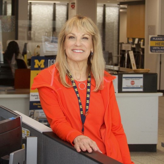 A smiling Ellen Looker is usually the first person a School of Dentistry patient meets at the main entrance when they arrive for their appointment. As Guest Services Coordinator, Ellen’s job is to greet patients, answer their questions, and guide them to the proper clinic on the various floors of the building. She’s worked at the dental school for eight years. Previously, she worked in hospital settings for 35 years as a respiratory therapist after earning an associate’s degree in respiratory therapy and a bachelor’s degree in allied health. She also was a counselor for youth from ages 10-17 after earning a Master’s of Social Work degree. Those previous experiences in healthcare settings and as a social worker mesh perfectly with her job at the dental school. She recently discussed the importance of helping patients navigate going to the dentist, which for many people is not easy or simple.