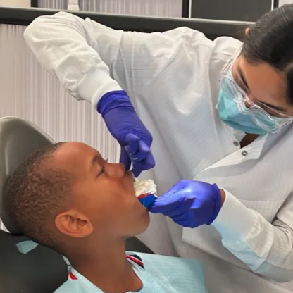 Makai’s 11-year-old brother Nehemiah Payton was in the adjacent dental chair having his own personalized mouthguard made at the same time. Their mom, Dana Payton-Lock of Belleville brought her sons to the clinic because they play youth football for the Van Buren Tigers. Elsewhere around the clinic, sixty other athletes from a variety of sports completed the process led by about 30 dental students supervised by faculty.