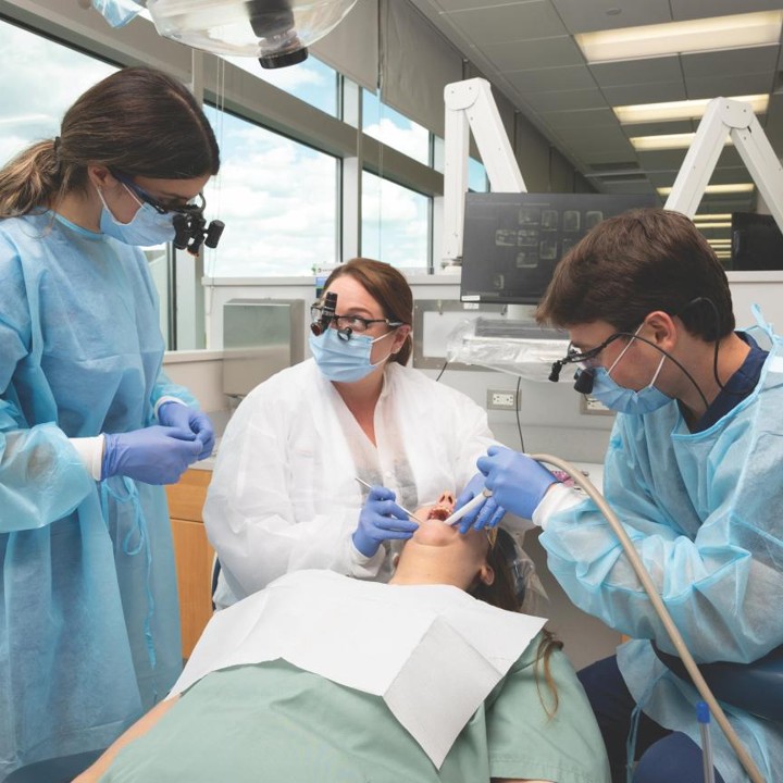 Pre-clinical education closely simulates real-world practice. Students have 24/7 access to practice procedures on mannequins, learn patient communication from faculty, get exposed to treatment planning, and transition from traditional methods to digital dentistry as they progress. Faculty rotate through the pre-clinic.