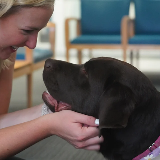 “The response has been incredibly positive,” said Althea Reutzel, MS, program manager. “The atmosphere changes when the dogs are present. Many patients now schedule their appointments specifically around the days the dogs will be on campus, and they know each of them by name. Students often tell us it’s one of the most effective ways they decompress during exams or busy clinic days, and staff appreciate the noticeable boost in energy and morale. They have even started keeping treats behind the welcome desk and the dogs know exactly where to go!”
