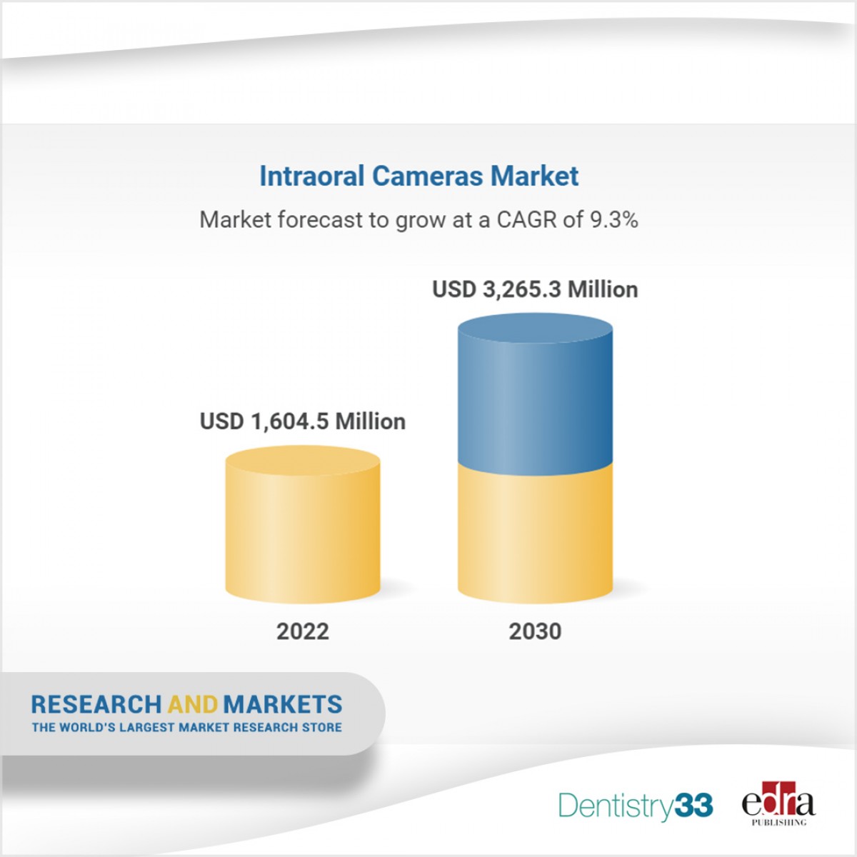 The global market for intraoral cameras is expected to grow by a CAGR of 9.3%, according to a report by market analysts, ResearchAndMarkets.com. The market was valued at $1,604.5 million in 2022.