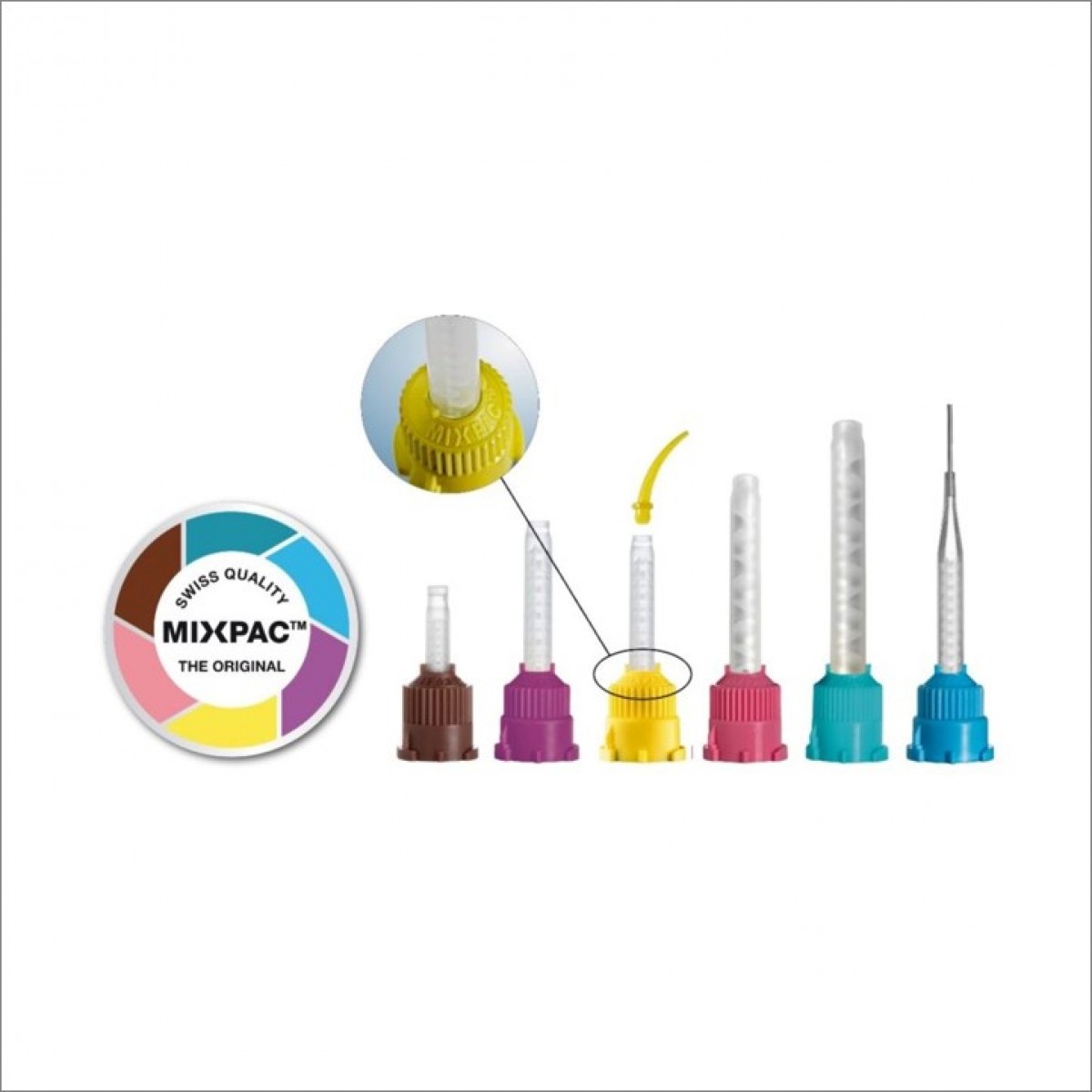 medmix Switzerland Ltd. operates globally in the field of static mixing tips, cartridges and dispensing devices for the dental sector. Genuine MIXPAC tips can be identified by the MIXPAC name stamped on the retaining ring and the CANDY COLOR Quality Seal.
